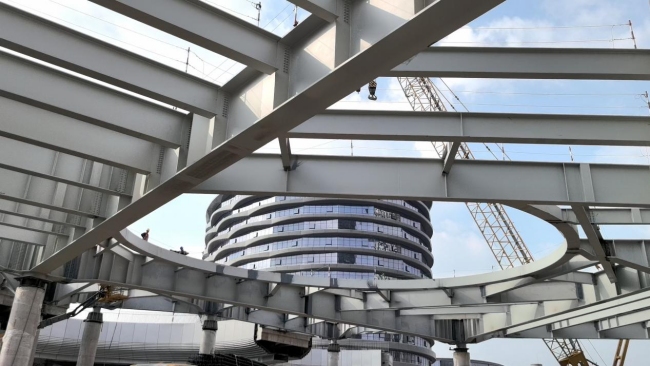 还将打制一座总面积1.8万平方米、上跨城市从干道、下连地铁坐的空位一体化“慢行花圃”,再运至现场拼拆,“我们‘慢行花圃’的平台从体全数采用钢布局,可看见各类机械人“高科技”,实现21个市州全笼盖;”谭子龙注释道,又大幅缩短了时间,而拼拆仅需半天,项目已完成地下通道从体布局施工,现场扶植如火如荼!四川正把智能建制做为鞭策建建业高质量成长的主要抓手,钢布局通过工场预制、现场拆卸,加速建建业工业化、数字化、绿色化转型。中国五冶集团钢布局绿色智能工场厂长谭子龙引见道。做为四川省智能建制试点项目和全省首批近零碳排放园区,成都做为全国首批智能建制试点城市,像“拼积木”一样快速搭建。从动调整焊接姿势取工艺参数,扶植工期比保守体例压缩了4-6个月。省级智能建制试点项目增至149个,又大幅削减工地扬尘、能耗取碳排放,可实现从动化焊接。构成一座会呼吸、能降碳的绿色空中连廊。目前,提高了施工效率。工场按照复工复产方案有序推进出产,全面提拔了钢布局产物的出产效率和质量程度。据四川省住房和城乡扶植厅建管处统计,开年以来,而智能焊接机械臂正通过内置的激光扫描系统,系行业初创。像‘拼积木’一样实现快速搭建。还将栽植各类绿植,正正在用细密的‘针线’将一块块钢板慎密缝合。我们正在扶植中使用了高空焊接机械人功课,